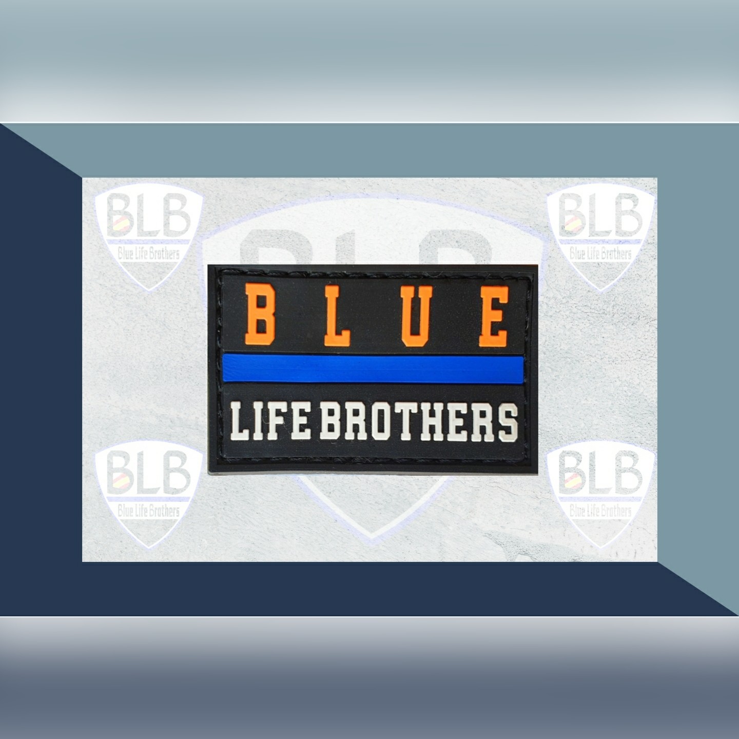 En la edición Blue Life Colors, presentamos esta pieza rectangular culminada en el centro por una línea azul que rodea las letras de Blue Life Brothers en naranja y blanco.